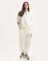 Jogger color blanco, con cintura elástica, tiro alto, tejido de felpa, cintura, y bajos acanalados, semiajustado, con diseño gráfico de Tom And Jerry.